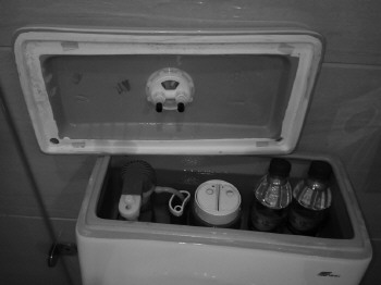 家住金鼎华府的于先生,为了节水,在抽水马桶的水箱里放了两个矿泉水瓶。于先生向记者演示了改造马桶水箱的方法,只见他拿出两个500毫升的矿泉水空瓶,装满水后,再放到水箱内。由于矿泉水瓶的重力,这样每次水箱就会少蓄水。在马桶的水箱里放几个装满水的矿泉水瓶,冲水的压力没有减少,对于冲厕不会有影响,但每次能节约不少水。
