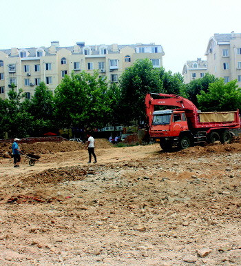 在同安路小学操场东侧的空地上,有铲车在挖土方、做地基。 吕璐 摄