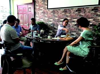 26日,记者步入七彩云南庆沣祥普洱茶日照店,墙上陈列着不同形制的茶具。各种优质普洱茶映入眼帘,涵盖饼、砖、沱和散茶形式。茶艺师优雅地为来宾泡开一片片普洱,醇香沁入心脾。
