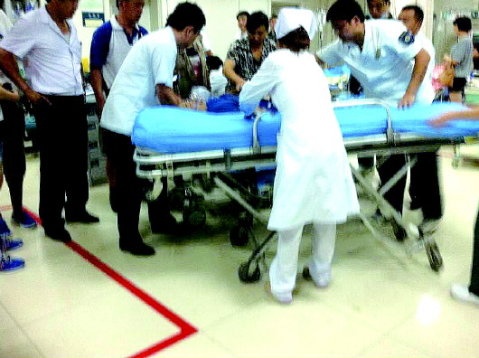 27日中午,一名工人正在省立医院东院接受抢救。 本报记者 王建伟 摄