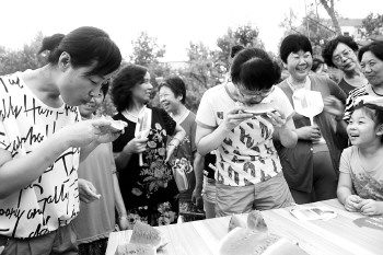 吃西瓜比赛很火爆。本报记者 范少伟 摄