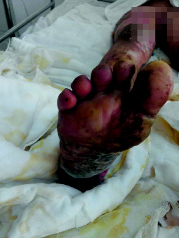 经过医院诊断,刘国帅为重度烧伤,右腿从大腿向下,左腿从膝盖往下,不同程度烧伤。27日,在潍坊市人民医院,孩子的父亲刘文告诉记者,刚进入医院的时候,孩子伤情严重,医生说很可能要对脚趾头截肢,现在刚刚做了植皮手术,以后的治疗情况还要看康复情况。
