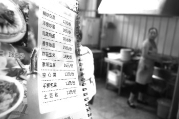 在王军红的渔家乐,一进门就有一个“明码标价”牌,上面写着渔家乐各种菜品的价格,土豆丝12元,西红柿炒蛋18元……在住宿登记前台,也明码标价出了当天的房价,标间是200元一夜。