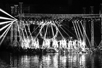 本报7月27日讯(见习记者 隋忠伟) 由日照市艺术剧院和龙门崮旅游度假区联合打造的大型山水实景演出《舞韵龙门》,近日在龙门崮旅游度假区龙湖举行,60余名演职人员用80分钟的豪华演绎,为广大观众展示了穿越千年的齐鲁文化历史以及日照本土丰富的传奇文化故事。