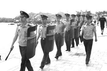 7月25日,山海天边防派出所平安海滨服务队正式成立。今年夏天,山海天边防派出所根据辖区旅游旺季警情特点,成立了由边防官兵组成的平安海滨服务队。他们手持警用盾牌、警棍,在游客密集区巡逻。