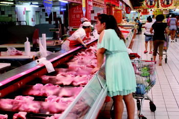 目前,农贸市场部分摊点销量下降三成左右。“一般一天卖个五六头猪不成问题,现在最好的时候一天才卖四头。”张店金塔农贸市场一位摊主介绍。