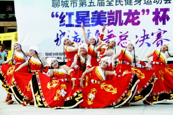 广场舞又名“坝坝舞”,因其良好的健身效果和喜闻乐见的形式,广受中老年人喜欢,在中国随处可见。25日下午的红星美凯龙杯健身舞大赛上,东昌社区艺术团带来的《喀秋莎》惊艳全场。