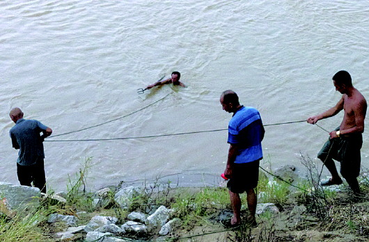 小孟的几位长辈在黄河打捞。 本报记者 李阳 摄