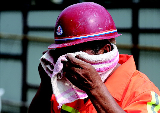 高温天工人在劳作。(资料片) 本报记者 周青先 摄