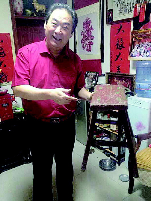 ◤晨光茶社初营业时相声神童李伯祥踩的凳子,这是晨光茶社唯一留下的老物件了。