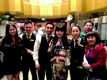 此次歌诗达需要的领队多,副总经理王武厦,她第一个申请担当领队。从登船的那一刻起,王总一直在忙碌,不仅要处理好自己团队的问题,还主动去邮轮前台帮助大家解决问题,尽自己最大的努力帮助游客解决各种问题!