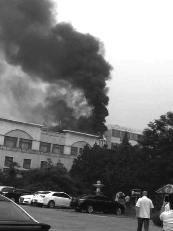 本报济宁7月28日讯(记者 孟杰 实习生 张丽丹) 27日下午6点半左右,城区运河宾馆东北角突然窜出明火并伴随大量黑烟。宾馆工作人员称着火位置是灶房的排烟道。所幸消防及时扑灭火势,并没有蔓延至其他区域。