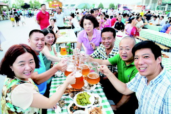 本报7月28日讯(记者 秦雪丽) 啤酒节,您去了没?自24日“伴山壹号”烟台第六届青岛啤酒节开幕以来,吸引众多市民前去狂欢畅饮,每天都是满满当当,座无虚席,除了休闲娱乐的市民,一些商务人士也将自己的客户请到了啤酒节现场,哈酒的同时也增加了彼此的感情。