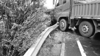 28日,一场疾风骤雨突然袭来,午两点半左右,一辆大货车沿青岛方向行驶时,没有掌握好方向,撞上了中央护栏。