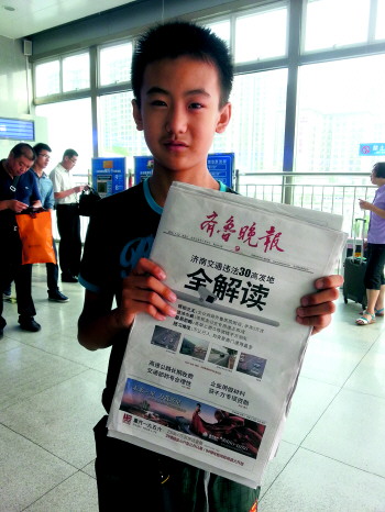 采访中,齐浩宇告诉记者,去年刚参加暑期营销秀时自己比较腼腆,不太敢和路人交谈,最初在潍坊长途汽车站卖报,竟然一份也没卖出去。在初次受挫后,他又转战长途汽车站。