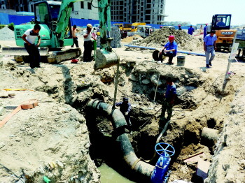 2015年7月1日,工作人员紧急对供水管道进行维修。 本报记者 马志勇 摄