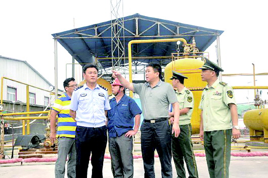 本报曹县7月26日讯(记者 邓兴宇 通讯员 韦燕飞) 为深刻汲取“7.16”日照岚山区石化企业爆炸事故教训,切实排查全县各类易燃易爆单位消防安全隐患,17日下午16时,曹县副县长王磊、公安局副局长王付林、消防大队吴翔华教导员冒雨深入曹县中天然燃气有限公司、祥云化工有限公司开展消防安全检查情况。