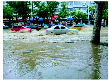 本报新泰7月28日讯(实习记者 巩克通) 27日下午,新泰城区迎来短时间急促降雨,两个半小时降雨36.8mm,并伴随雷电。部分路段出现大量积水,最深的地方达到三四十公分。
