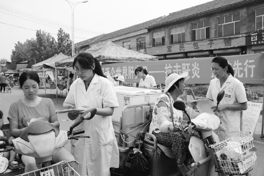 7月28日是世界卫生组织确定的第五个世界肝炎日,惠民县疾控中心和李庄镇卫生院在李庄大集上举办宣传咨询活动。活动中,工作人员悬挂宣传横幅,设置宣传展板,向群众发放肝炎防治明白纸,讲解乙肝疫苗接种的注意事项。同时,就“乙肝五项”、乙肝传染途径、慢性乙肝诊治等问题,接受了群众的咨询。