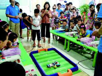 ▲小记者举行机器人足球PK赛。 记者 陈乃彰 摄