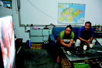 ▲闲余时间,杨师傅夫妇会选择看电视的方式休闲。