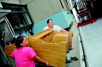 ▲多年合作搬运,杨师傅夫妇配合得非常到位。