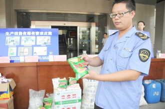 28日上午,在市中公安分局举行了打击食品犯罪新闻发布会,现场介绍了多起近期查获的食品犯罪案件。市中公安分局指挥中心主任张茂磊介绍说,近期警方及有关部门相继侦办了使用硼酸、硼砂生产加工凉皮、工业盐加工鸭脖子等生产销售有毒有害食品案件8起,捣毁食品犯罪窝点10个。有7人因为食品犯罪已被警方拘留,还有3人被上网追逃。针对目前发现的问题,警方下一步将继续进行行业整治。对发现的问题顺线追踪,打击源头。
