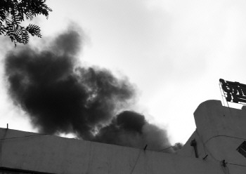 楼顶冒起滚滚黑烟。本报记者 张召旭 摄
