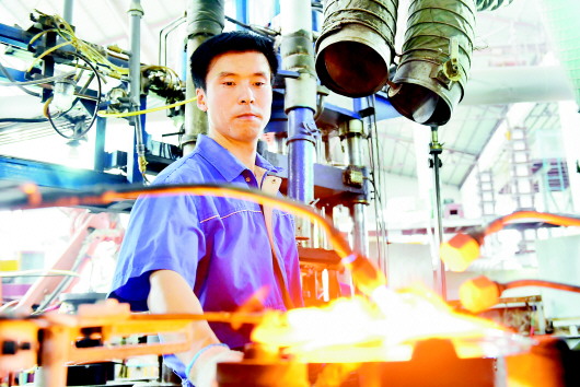 呆了不到5分钟,记者就感慨“这里真热”。刘绪森听后,笑着说:“你们肯定受不了,我刚来时也受不了。”谈到自己刚来车间工作时,正是夏天,比室外还要高的温度让他吃不消。有时一天下来,恶心头晕,热得吃不下饭,晚上睡觉的时候腿竟然抽筋。
