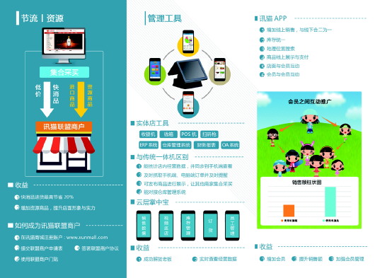 其实,实现了信息互联的讯猫智能店商户等于是一个大的经营联盟,可以实现统一采购,巨额的采购数量,自然会极大拉低采购成本。据了解,云媒讯猫智能化商业系统的集合采购,可直接与生产厂家对接,省去三四线批发商的中间环节,最大限度地降低成本30%以上。传统销售渠道中各级代理商层层加价,每个环节的存在都会增加20%的间接成本,造成销售终端成本大,利润小,效率低。云媒讯猫智能化网络下的渠道模式发生颠覆,所有加盟商家可集中采买,减少代理商中间环节,将成本压缩到最低。
