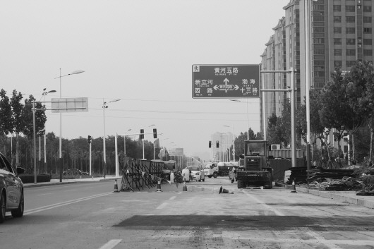 29日白天,新立河东路上的最后一处污水干管治理围挡。