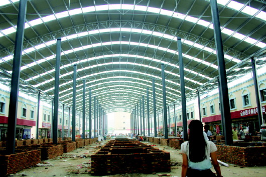 目前,蔬菜区、熟食区已完成100个台子主体的垒建,正在进行台子的瓷砖铺设,水产市场已完成主体建设,正在进行内墙粉刷和门窗安装。
