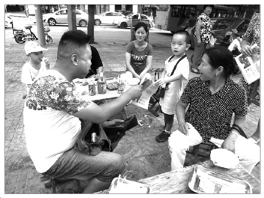其实吃完后他也只是玩了几分钟而已。我提醒他可以去问问正在吃饭的人有没有买报纸的,然后我一边吃饭,一边看他去挨个问人家。第一位叔叔一脸不耐烦的样子说不要不要,儿子看了我一眼,我又鼓励他去问问其他人。第二位和第三位都是带孩子的妈妈,她们各买了一份,后来又接连卖出了两三份。很感谢买孩子报纸的人,也许有些人并不需要,但却还是去支持孩子,鼓励孩子,给了孩子很大的鼓舞。我们从快餐店出来后,正好是一些门头房,有些热情的店主甚至主动喊儿子过去,要买他的报纸,我真的挺感动的!