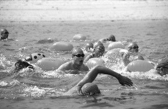 ▲“铁人”们在水中奋力拼搏。 (资料片) 记者 陈乃彰 摄