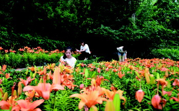 近期的几场降雨给济南红叶谷景区蒙上了神秘的面纱,拨开面纱,凉爽的山风习习而来,娇艳的百合花竞相开放,亭亭玉立,绚丽多姿,与欧式建筑的百合园形成了一幅风姿卓越的的彩色图画。红叶谷的百合园吸引了大批的游客慕名前往,他们在圣洁典雅的百合花阵中流连,在这迷人的花海里徜徉,欣赏着百合园里的异域风情,沉醉在这姹紫嫣红的百合花海里。