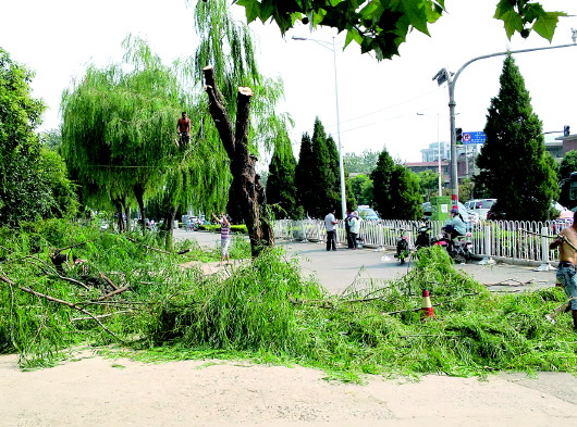 “路边的柳树有10多年了,怎么说伐就伐了?”30日上午9时许,家住西关体育场附近的孔先生向本报反映,他昨天就看到有人在伐掉西安路两旁柳树的树枝,原以为他们只是在修剪,直到后来看到树冠也被砍了。“夏天天气炎热,而这些垂柳可以遮阴,伐了多可惜。”对于路边树为何被伐,孔先生很不理解。