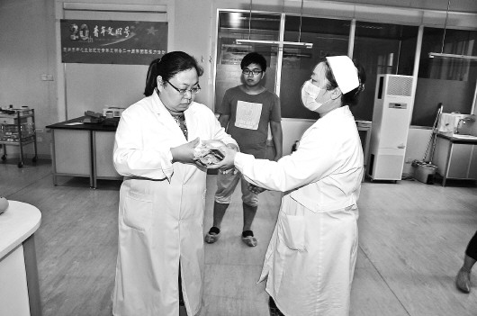 15时30分,刘玉强献出400cc血。据悉,还有三名符合条件的好心市民前来献血。四人共献血1500cc。