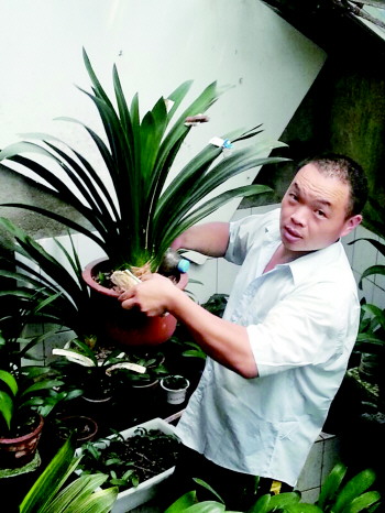 40岁的李建滨每天最爱做的事就是泡在他的花房里侍弄这些君子兰。 本报记者 孙淑玉 摄