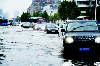 8月3日,全市出现强降雨,多个低洼路段出现大面积积水,截至下午6点,全市平均降水量88.7毫米,为今年入夏以来最强降水。 本报记者 马志勇 摄