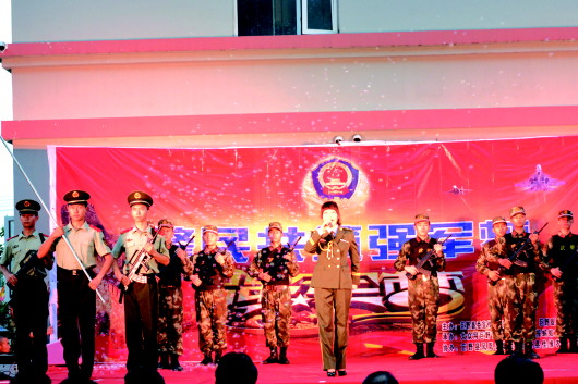 8月31日晚,在巨野县凤凰办事处和佳缘农产品贸易有限公司的大力支持下,本报巨野蚂蚁义工团联合巨野县委宣传部、县公安局、县民政局等单位组织文艺演出队慰问县武警中队广大官兵。通过军民联欢,增进了军民情谊,同时也给部队欢庆“八一”建军节送去了一道文化大餐。