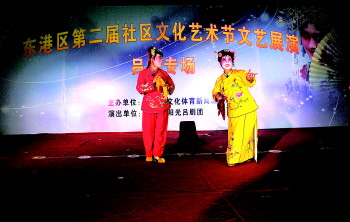 8月1日晚,东港区第二届社区文化艺术节吕剧专场在东港区政府广场激情上演,来自阳光吕剧团的演员们带来了传统吕剧大戏《姊妹易嫁》赢得观众热烈的掌声。