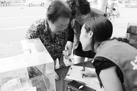在听说这一消息后,博兴县妇联和博商汇决定为王旭浩募捐。募捐点分别设在周末阳光门前广场和银座购物广场门前。7月31日气温非常高,早晨七点,博商汇65家成员已经在募捐场地集合。大家顶着烈日发募捐材料,很多过路人慷慨解囊,对收到的每一笔爱心款,大家都回报以90度的深鞠躬。