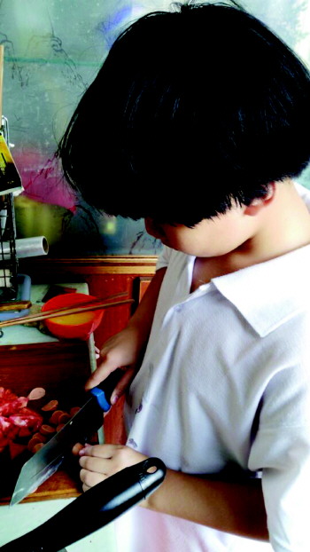 中午下班回家后,妈妈便躺到床上,眉头一直皱着,小报童魏荣妍知道妈妈只要一皱眉头肯定是累得,于是她跟妈妈说:“妈妈您辛苦了,今天我来做午饭。”