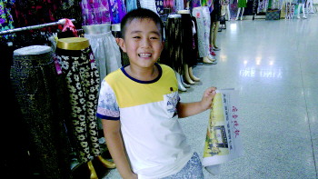 宋浩源在张店义乌小商品城卖报。 本报实习生 周一 摄