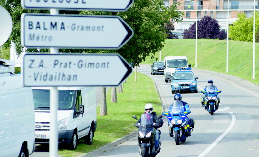 ◥8月1日,在法国图卢兹近郊,载有疑似马航MH370航班残骸的白色货车驶入航空技术分析机构。