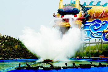今年新上马的二期重磅项目水龙王是家庭游客最喜欢的明星嬉水项目,独特、富有中国特色的龙形外形,高空中的原始森林、火山岩浆、冰雪世界三大场景都让孩子游客新奇不已,他们会不停的问自己爸爸或妈妈很多关于龙的问题,在这一问一答中,作为中国人图腾的龙的知识得到了普及和传承。