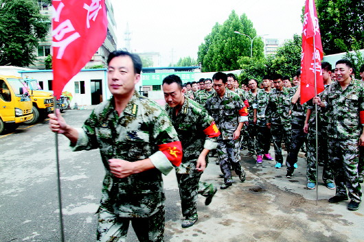 “紧急集合,防汛队员紧急集合。”4日中午,在二七新村街道办事处铁二社区,随着指挥人员一声令下,15名防汛小分队成员身穿统一服装赶到集合点。据街道办事处行政办公室工作人员介绍,这15名防汛小组成员都是街道办事处的工作人员,来自街道办事处各办公室、各社区。根据之前的组织,街道办事处总共组织了一支由40人组成的防汛应急小分队。