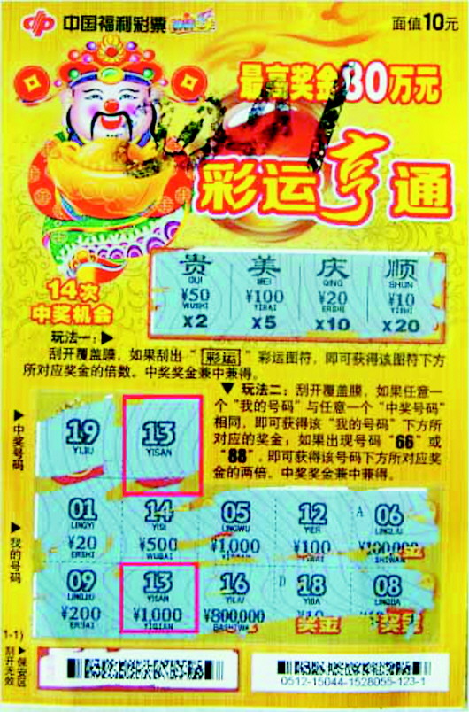 7月23日大暑,济南的宋女士(化姓)随手刮了几张“彩运亨通”,却意外收获了1000元奖金,还有北京三日游资格。