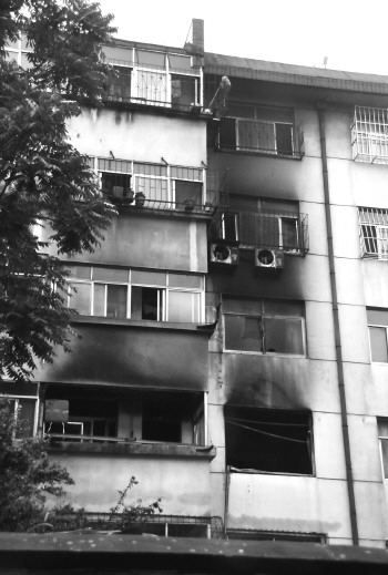 4日上午9点半,记者赶到枣店阁小区,着火的住房是5号楼4单元三楼东户,楼外的绿化带里还残留着很多玻璃碎片。远远望去,三楼东户阳台和卧室的窗子已经全部被烧掉,楼体周围和三楼以上的墙壁被熏黑,位于五楼的两个空调外机也已损坏。