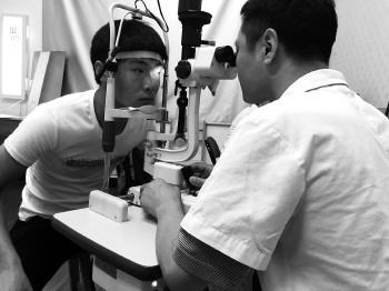 嘉祥一适龄青年参加视力测试。本报记者 孔令茹 摄